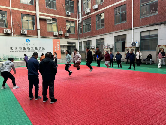 为弘扬体育文化精神,提高教工身体素质,11月19日,化工学院在J2文化广场举办教工跳大绳活动。