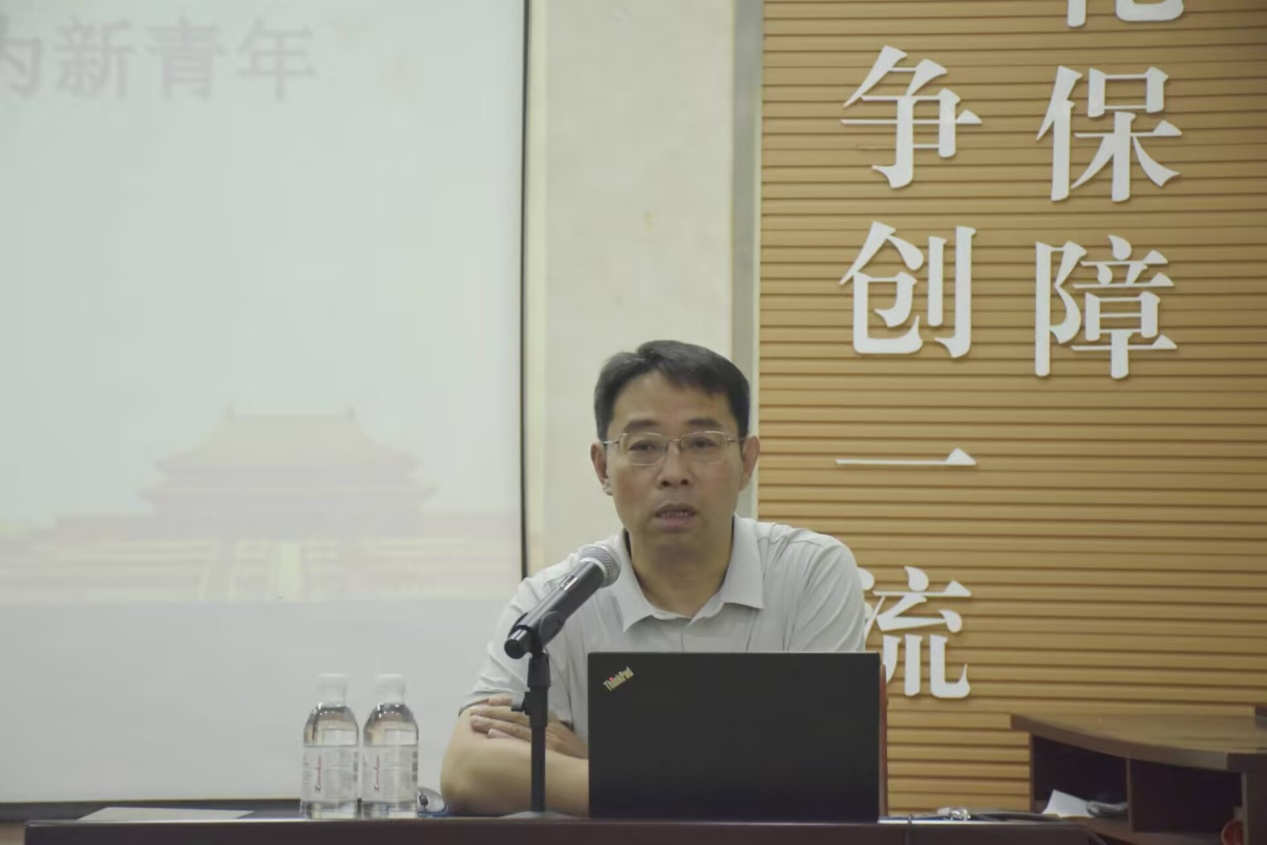 党课最后,申兆亮以张伯苓“爱国三问” 与党员共勉,期许他们以“立大志、明大德、成大才、担大任”的信念踏上新征程。