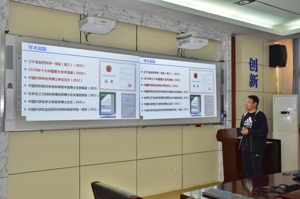 论坛上,6位优秀青年学者带来了精彩的学术汇报。加拿大女王大学的高国芮作题为《High-rate,Selective and Stable Electrochemical CO₂ Reduction in Aqueous Systems》的报告;香港理工大学的乔羚和高振国分别聚焦“数据驱动多主元合金设计与变形机理研究”“电磁波吸收材料的多物理场耦合及无线能量交互”展开交流;香港科技大学博士钱希堂分享了“新型固态离子导体的设计、制备与应用”方面的研究;清华大学的程传钦学者围绕“面向高效稳定蓝光 OLED 的材料设计与显示应用研究” 进行了深入探讨;美国德克萨斯农工大学的李宏伟学者则介绍了 “聚电解质材料的特性及应用”。各位学者的报告内容丰富、见解独到,展现了材料科学领域的前沿动态与创新成果,引发了现场师生的热烈讨论。