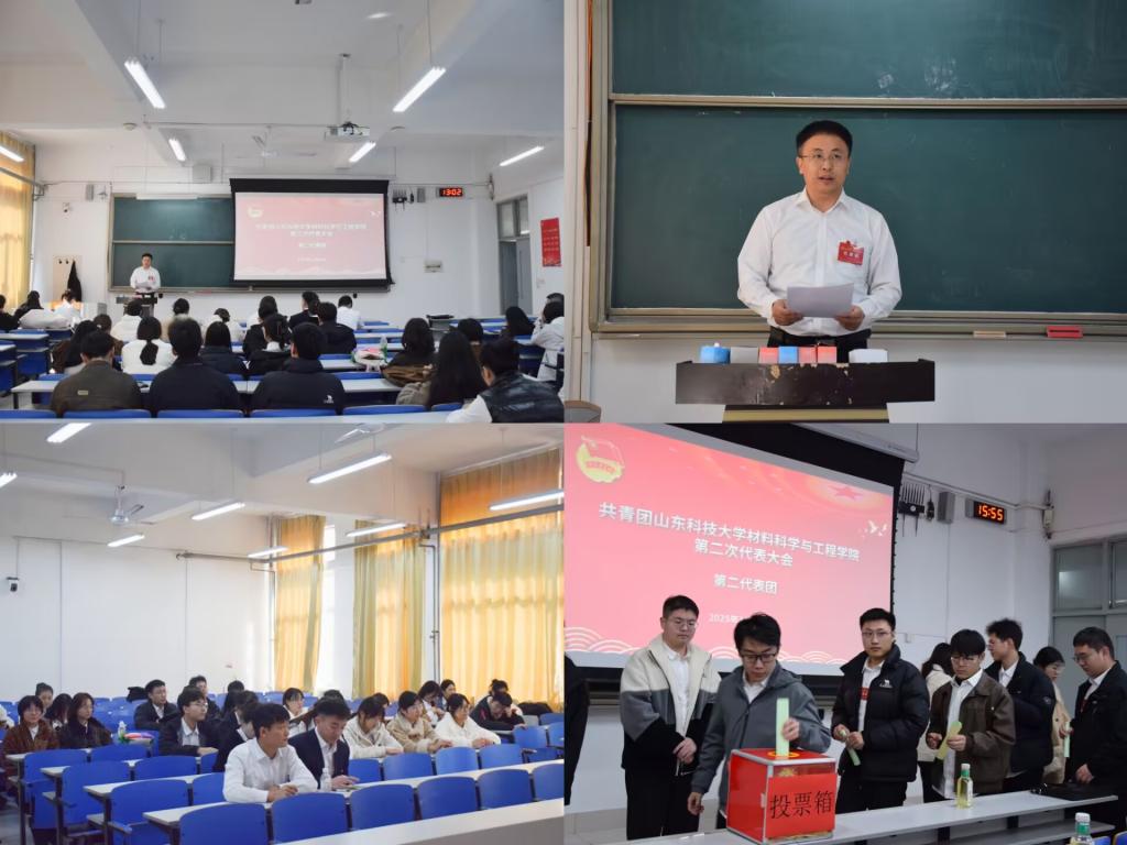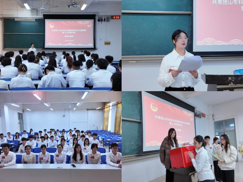 11月4日,共青团山东科技大学材料科学与工程学院第二次代表大会隆重举行。校团委书记高一丹、材料学院党委书记申兆亮、材料学院党委副书记兼副院长李建楠以及全体团员代表参加本次会议。