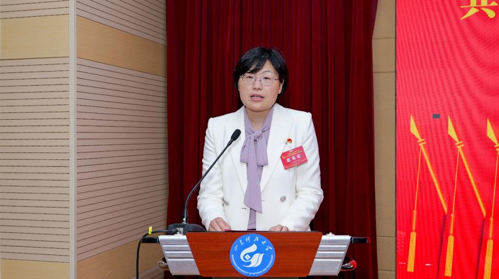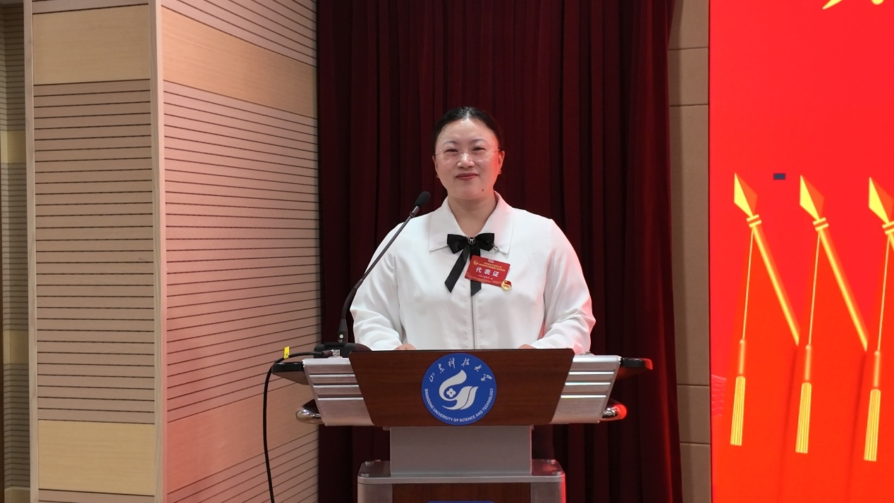 材料学院团委书记马韶霞代表共青团山东科技大学材料学院第一届委员会作题为《凝心铸魂跟党走挺膺担当建新功——为建设工科主导、特色鲜明的高水平应用研究型大学贡献材料青年力量》的工作报告。报告全面回顾了上一届委员会的工作成果,深入分析当前共青团工作面临的机遇与挑战,并明确提出未来工作的目标与任务,为学院共青团事业发展绘制了清晰蓝图。