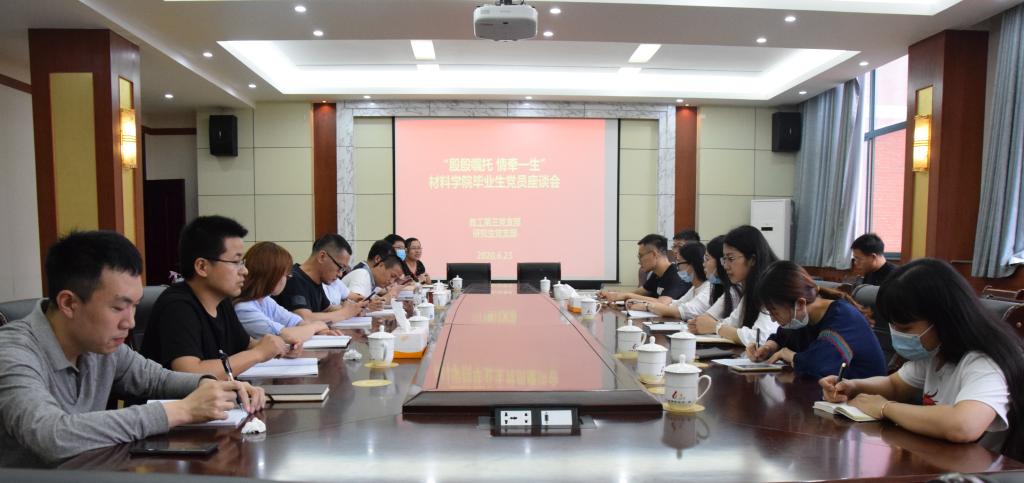 6月23日下午,材料学院在J2-434举办了“殷殷嘱托 情牵一生”毕业生党员座谈会,教工第三党支部与研究生党支部全体党员参加了此次活动。