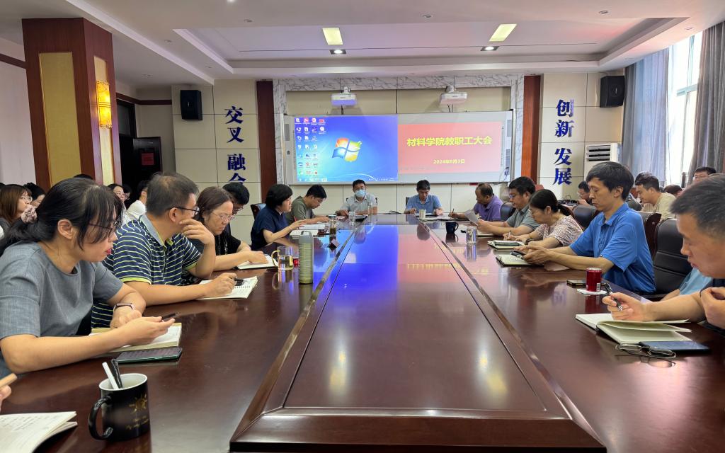 9月3日,材料学院于J2-434召开新学期全体教职工大会,总结学院2024上半年工作,研究部署2024年下半年工作。会议由学院党委书记申兆亮主持。