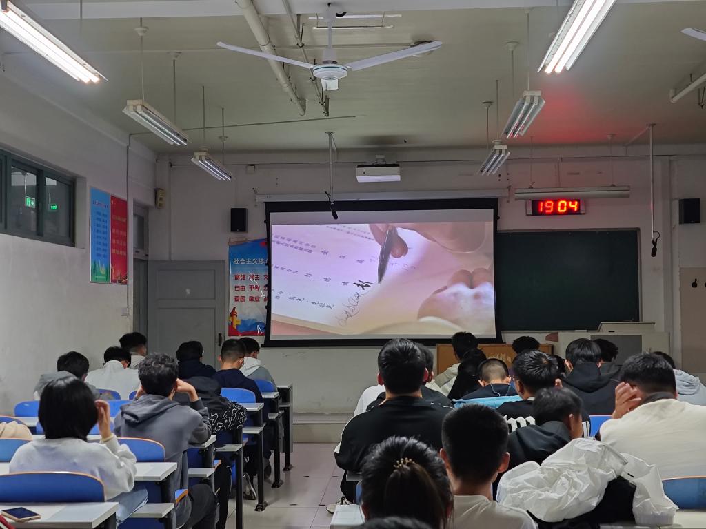 为进一步增强广大青年学子的爱国主义情怀,弘扬爱国主义精神,材料学院学生会社会实践部于10月12日晚上在J3-204、J3-207组织学生观看爱国主义电影《跨过鸭绿江》。