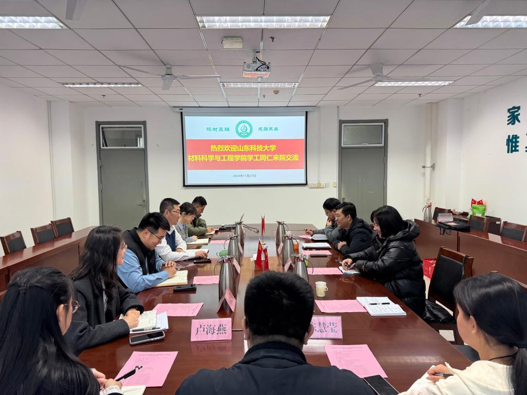 为加强工作交流,拓展育人工作思路,提升学生培育质量,11月27日材料学院党委副书记兼副院长李建楠一行4人赴中国石油大学(华东)材料科学与工程学院调研交流。中国石油大学(华东)材料科学与工程学院党委副书记孙启龙,各年级辅导员参加交流会。孙启龙主持会议。