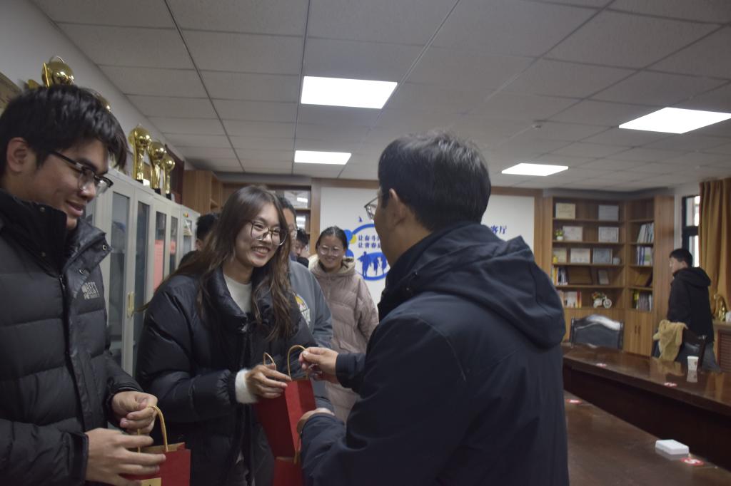 12月16日下午,材料学院于GC10学生公寓图书银行举办考研祝福活动,材料学院党委书记申兆亮、党委副书记兼副院长李建楠、团委书记兼学工办主任马韶霞、各年级辅导员及部分考研学子出席。申兆亮鼓励考研学子积极备考、适度放松,并祝愿考研学子马到成功;李建楠慰问考研学子,了解其学习与心理状况。各位老师为考研学子送上礼物,激励他们以良好心态迎接考试。繁星广场西北角举办“研途送温暖,助力考研梦”活动,分为刮刮卡制作、气球花打气及包装、不织布挂件制作和礼品包装等环节,通过多种方式为考研学子送上诚挚祝福。