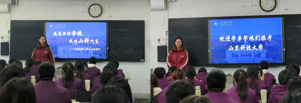 徐婉婷则从介绍山东科技大学、解读招生政策、分享专业概况、交流学习经验等四个方面来进行,为母校的学生们提供了有效的信息和建议。