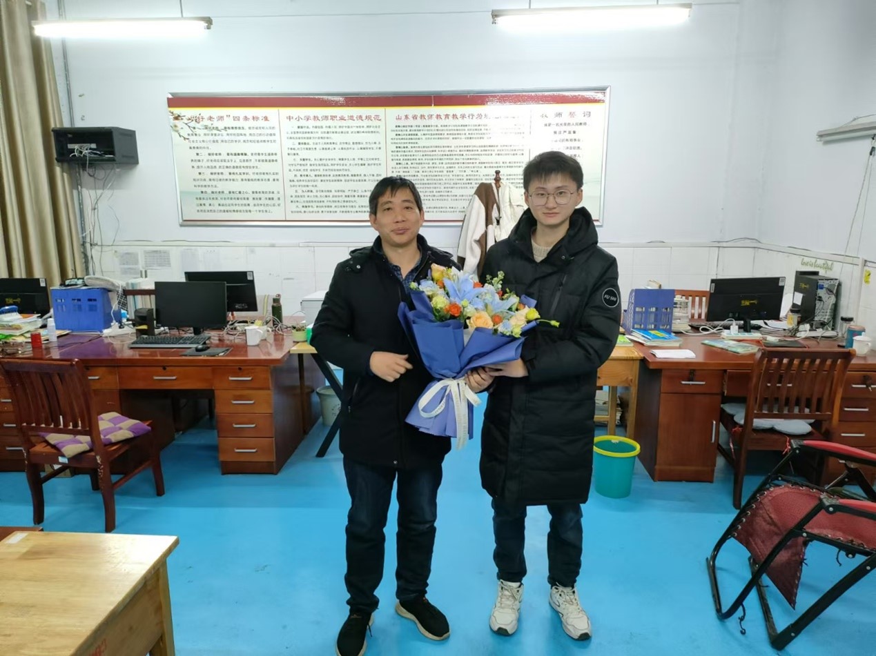 张凯回到母校第一件事便是为曾经的恩师献上一束鲜花,以此来表达自己的感激之情,同时与老师就学业与生活两方面进行了深刻的交流,收获满满。