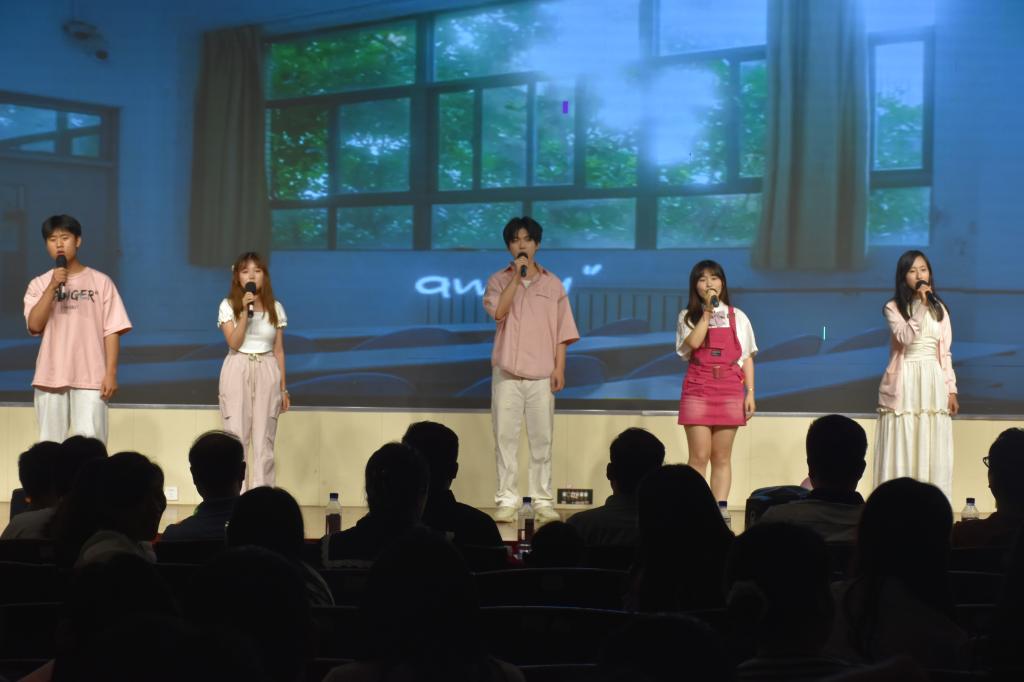 晚会以开场舞蹈《Ditto》瞬间引爆全场。李超然、孟菲等舞者以灵动的肢体语言穿梭光影之间,舞步热烈奔放如盛夏骄阳,将“青春”二字化作具象的生命力。歌曲《Show Yourself》与《动物世界》相继登场,歌手们清澈的嗓音如溪流淌过心间。王子杰带来的魔术表演《魔法时刻》不断制造惊喜,将毕业的“不确定性”幻化为奇妙的期待;舞蹈《桃花林》以水墨般的舞姿勾勒诗意校园,衣袖翻飞间尽是“人面桃花相映红”的青春图景;原创歌曲《你的离去》则用低沉的声线倾诉离别愁绪,舞台背景闪过四年校园生活的剪影。