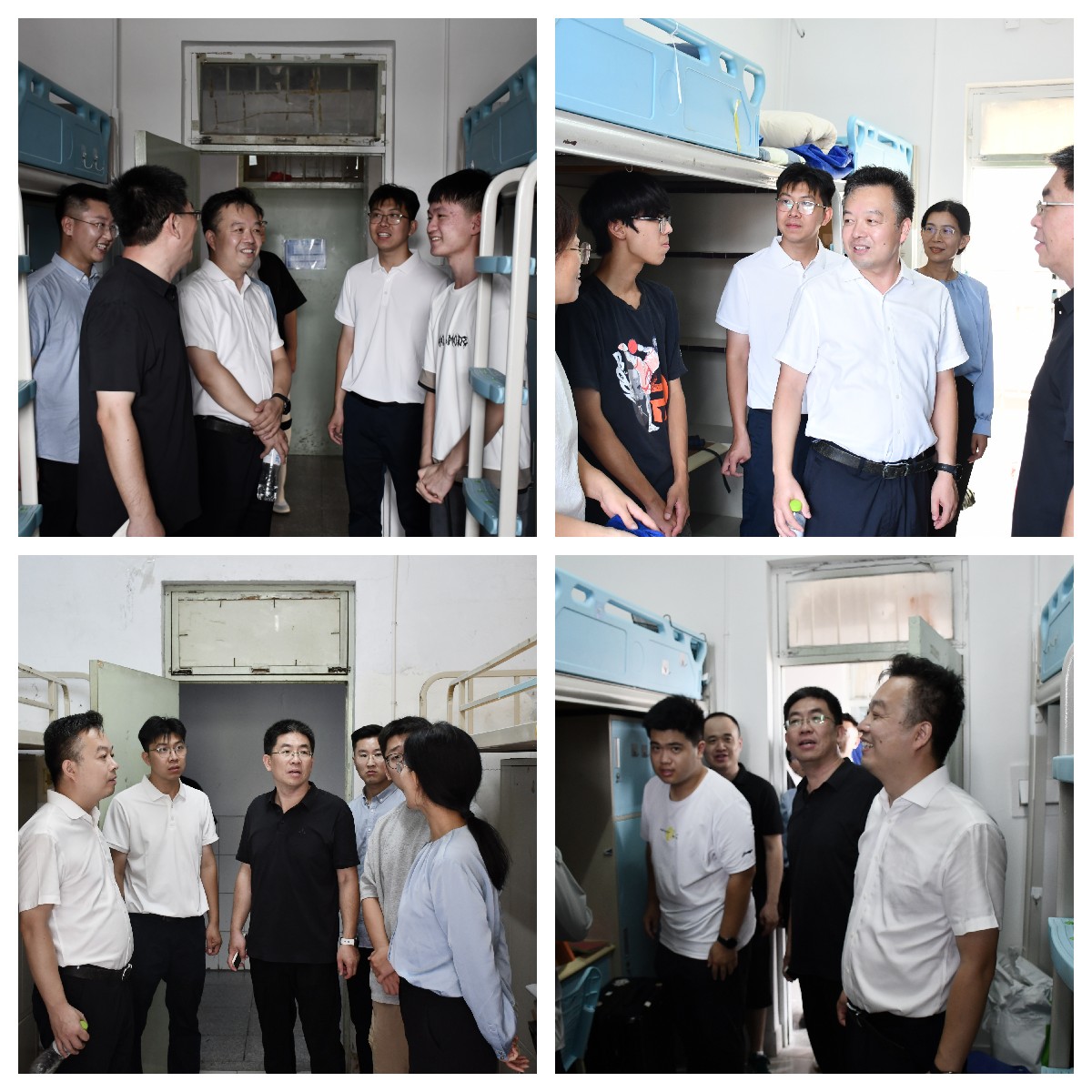 交通学院党委书记岳国伟、党委副书记李勇、学工办主任刘倩婧和新生辅导员王万楠深入学生宿舍,仔细询问新生入住后的生活情况,耐心解答大家对于校园生活的各种疑问,叮嘱同学们要注意宿舍安全、保持良好的生活习惯并尽快适应新环境,鼓励同学们在新的环境勇敢探索,积极进取,书写属于自己的青春篇章。