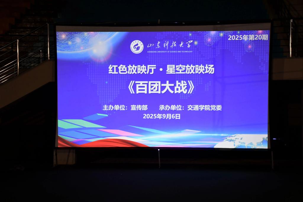9月6日,交通学院以“观红色影片,忆峥嵘岁月”为主题,在科创园区田径运动场举办“红色放映厅·星空放映场”活动,共同观看红色影片《百团大战》。