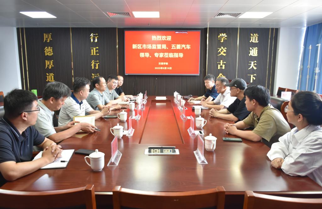 9月16日,青岛西海岸新区市场监督管理局副局长闫德华、柳州五菱汽车工业公司副总经理梁开荣等一行7人到交通学院开展调研交流,交通学院党委书记岳国伟、院长辛嵩等参加会议。