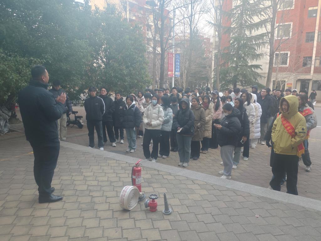 安全管理处消防科吴志杰老师现场讲解了灭火器的正确使用方法、操作注意事项以及消防栓的连接步骤,并指导学生依次进行实操演练。围绕“提、拔、握、压”的操作要领,以及对准火焰根部喷射的关键技巧,同学们在模拟火情场景中认真练习,逐步掌握了灭火器的规范使用方法,有效提升了应对初起火灾的处置能力。