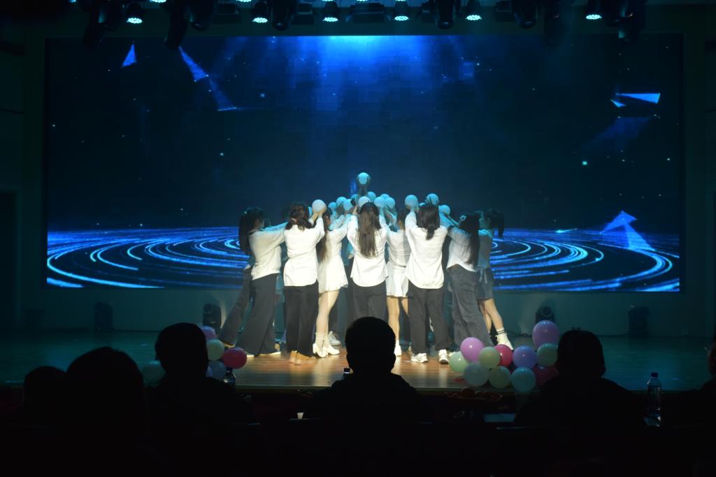 晚会开场由2025级全体班长、团支书在热情洋溢的《舞蹈串烧》中拉开帷幕,瞬间点燃了现场观众的激情。晚会分为上、下两个篇章。上篇以“奋楫扬帆通途阔 青春激荡梦启航”为主题,呈现了青春与梦想的活力。大艺团声乐队的《飞云之下》歌声悠扬,引人入胜;学生会体育部的小品《安可》包袱不断,笑料十足;权益部与舞蹈队合作的歌舞《篇章》活力四射;声乐队再次献上的《我们的明天》则唱出了对未来的美好憧憬。