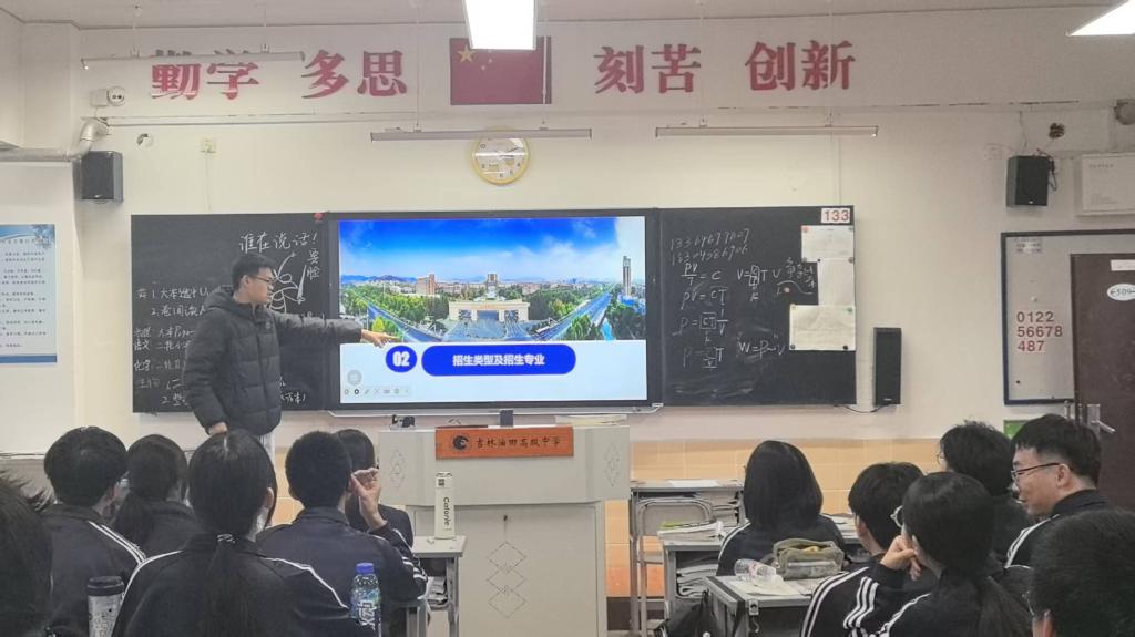除了团队作战,许多同学也以个人形式深情回访。在邹平市黄山中学,智慧交通2025-4班的夏祥芸同学向母校师生重点介绍了交通学院智慧交通专业的特色,详述了其在智能交通系统、大数据应用等领域的优势与广阔前景,并结合自己的高三奋斗史,真诚分享了“时间规划、错题管理、心态稳持”三条宝贵建议。在吉林油田高级中学,智慧交通2024-3班的陈仲一同学,则通过丰富的图文资料,展示了学校“三地五校园”的办学格局、26个国家级一流本科专业的雄厚实力,以及在第五轮学科评估中的突破性进展,并深情描述了馆藏丰富的图书馆等校园生活场景。他以学长的身份,分享了大学学习心得与专业选择思考,帮助母校学子更好地规划未来。