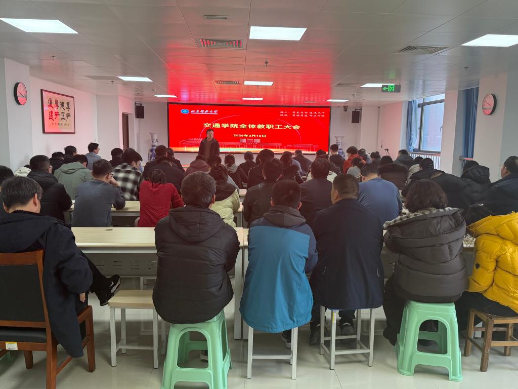 3月10日,交通学院在工程实训中心1203会议室召开全体教职工大会,会议由学院党委书记岳国伟主持。