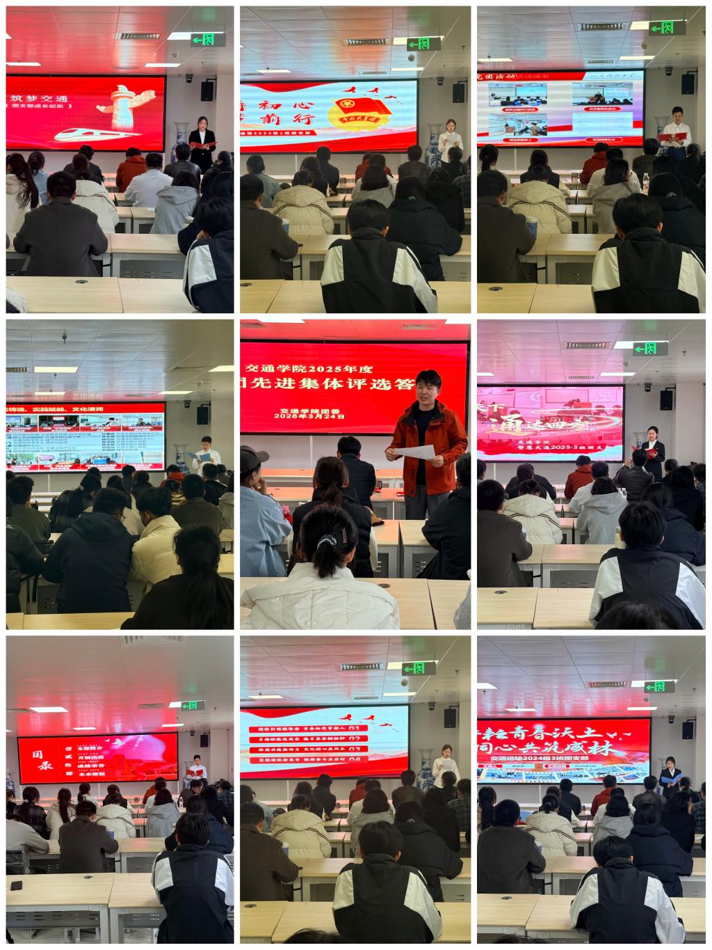 答辩会上,10个参评的团支部依次进行展示。各支部负责人通过PPT讲解与现场汇报相结合的方式,系统介绍了支部在组织建设、思想引领、科技创新、社会实践、文体活动等方面取得的成果与特色,并阐述了未来工作规划。汇报内容扎实、亮点突出,展现出交通学院团员青年昂扬进取、实干担当的精神风貌。