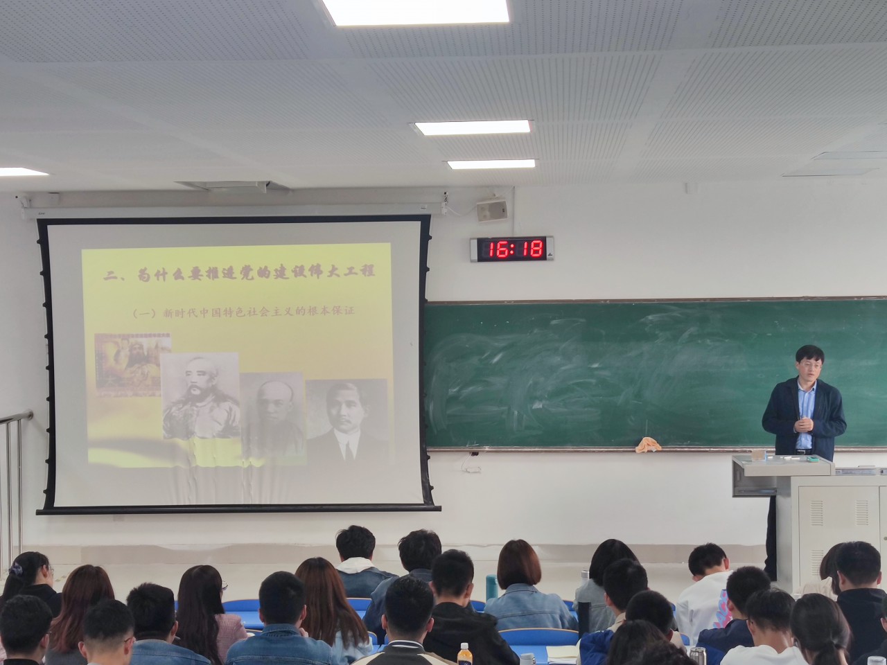 4月27日,党委组织部副部长徐云飞在J7-303为交通学院和土建学院党员发展对象培训班授课,党课的主题是“新时代党的建设伟大工程”。