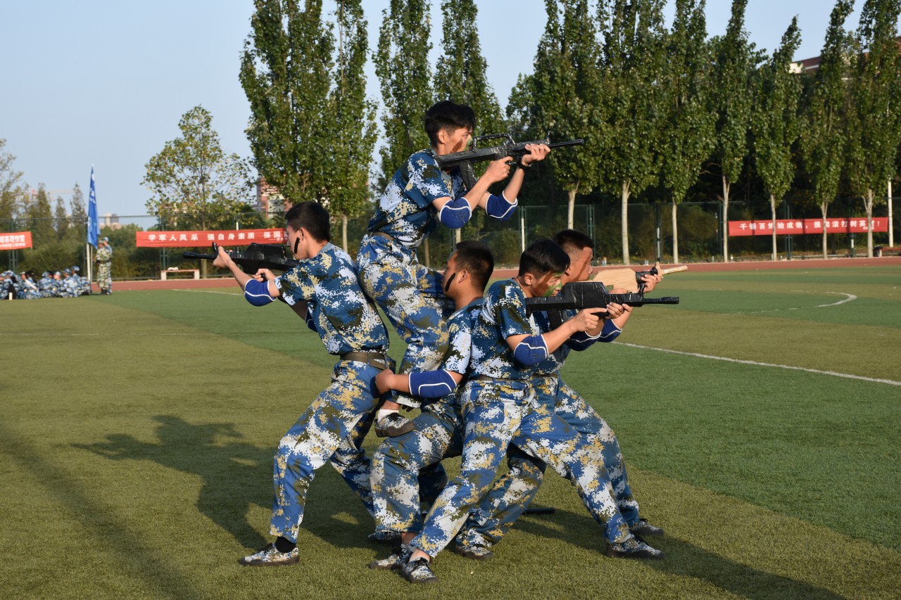 下午四点,学院各方阵队伍在高地体育场集合完毕,大家以饱满的精神严阵以待。伴着激昂的背景音乐,新生们带来了系列特色科目展示:方阵变换,摆出“山科”“交通”的字样,意为“我爱山科,我爱交通”;战术表演,打背包、解救人质及运动战术等一气呵成,振奋人心;队列表演,动作干净利落,整齐划一,有力的脚步声回荡在校园上空。