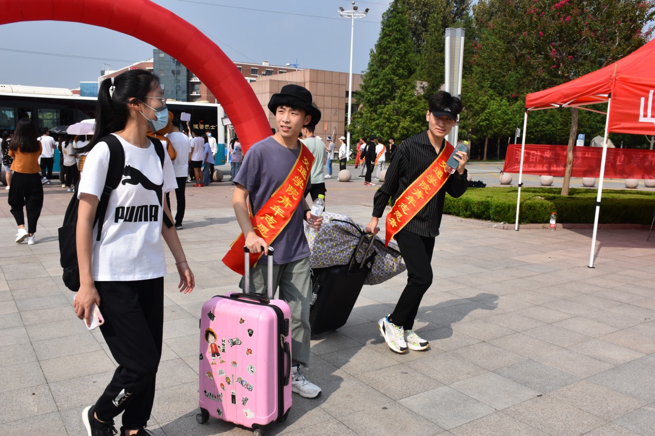 迎新当日,学院迎新工作人员及志愿者们早早地来到迎新点,布置现场,清点物资,各司其职、相互配合,各个精神饱满、热情洋溢。面对萌新,大家耐心地答疑解惑,不辞辛苦地帮忙搬运行李,往返于宿舍与迎新站点的路上留下了他们最美的身影……
