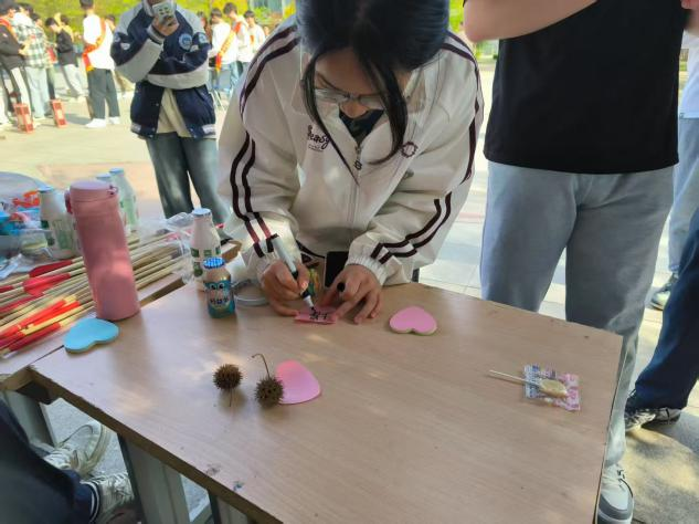 本次活动创新设计“纸笔诉心”“趣味竞技”“甜蜜收获”三大特色环节,将心理健康教育与趣味实践深度融合。活动伊始,“纸笔诉心”环节便吸引众多同学驻足,同学们或伏案疾书对自己的未来期许的寄语,或认真写下对师长、同窗的真挚祝福;更有不少学生将匿名烦恼投入“树洞信箱”,借文字抒发内心困惑,完成与自我的深度对话。