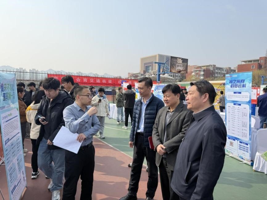 会前,学院领导班子成员、系主任、教工党支部书记、辅导员带领毕业生以及非毕业生来到学校春季校园双选会现场,与用人单位和在场学子深入交流,了解当前行业发展趋势、岗位能力要求及人才需求变化,询问毕业生的求职进展与就业意向,鼓励同学们坚定信心、把握机遇,将专业知识更好地用于服务国家和社会发展。非毕业生通过现场观摩、与企业面对面交流,提前感知职场脉搏,进一步明晰了未来的努力方向。