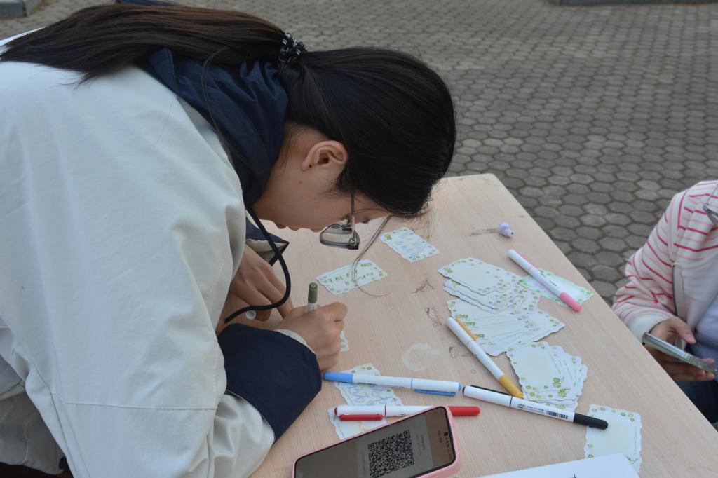 活动现场,同学们热情参与,纷纷动手制作属于自己的书签,认真写下对阅读的热爱、对生活的期许或对他人的祝福,一笔一划地镌刻在小小的书签之上。大家互相交流创作灵感,现场气氛热烈而温馨。完成后的书签由活动组织方统一收集,并有序放置在图书馆的自习桌、书架旁等角落,供往来同学自由取用。