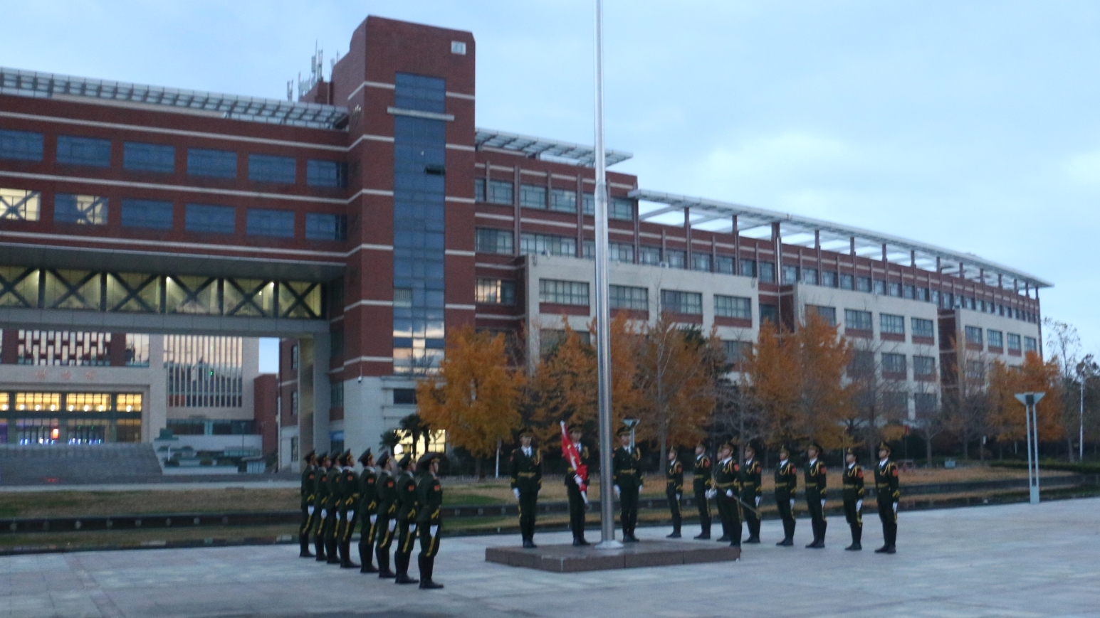 早晨6:30分,迎着清晨的第一缕阳光,国旗护卫队迈着矫健的步伐,整齐划一的走向升旗台,伴随着激昂的《中华人民共和国国歌》,鲜艳的五星红旗在清朗的微风中冉冉升起,全体学生庄严肃立,面向国旗行注目礼,表达着对祖国的热爱和崇高的敬意。