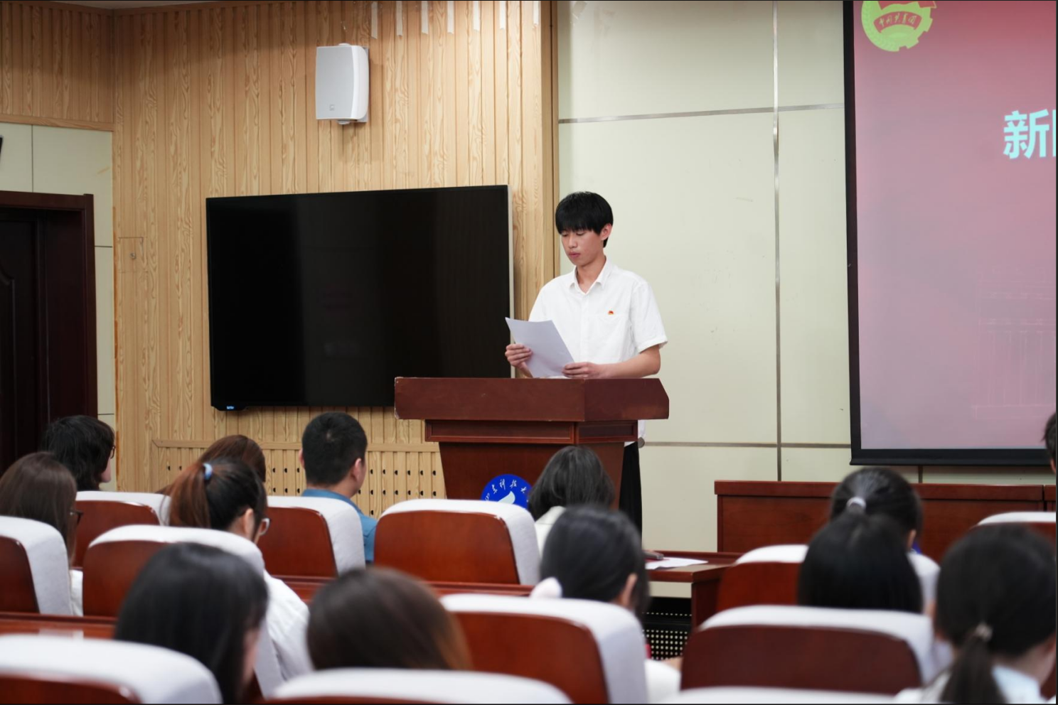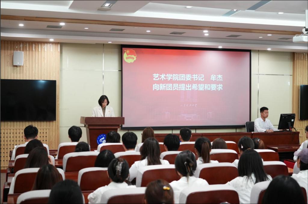 4月29日下午,艺术学院于J9-135举办2025年新发展团员入团仪式。艺术学院团委书记牟杰、辅导员李云坤老师、于靖雯老师以及优秀团员代表和新发展团员出席仪式,仪式由刘汉威老师主持。