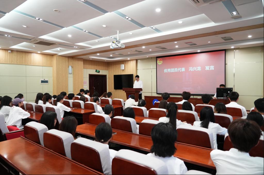 入团仪式在庄严的国歌声中拉开帷幕。由杨淼同学领学《团章》中有关团员权利和义务等内容。接着,李云坤老师宣读了新发展团员名单。名单宣读完毕,于靖雯老师和刘汉威老师亲手为新发展团员佩戴团徽。紧接着,在学生会主席张宝忠的带领下,全体团员面向团旗,庄严宣誓。宣誓结束,新发展团员代表王晨同学和优秀团员代表冯兴龙同学依次上台发言。他们纷纷表示,将努力学习团章,严格履行团员义务,在学习和生活中发挥模范带头作用。随后,艺术学院团委书记牟杰老师向加入共青团的团员们表示祝贺,同时希望大家激发强国有我的青春激情,不懈奋斗,推动学校共青团工作再上新台阶,为学校高质量发展贡献智慧力量。