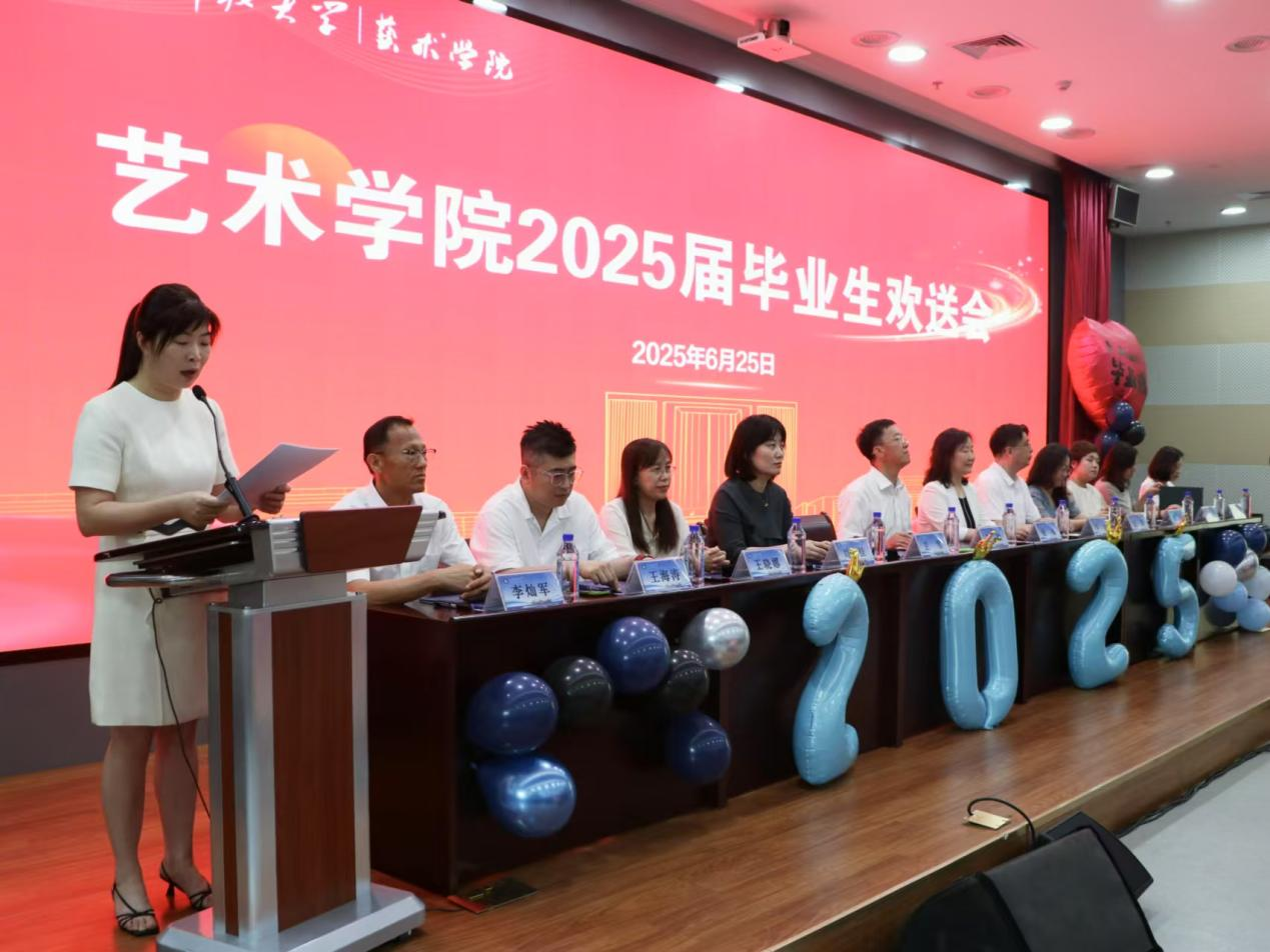 6月25日上午,艺术学院于图书馆求新讲堂为2025届毕业生举行欢送大会,学院领导班子成员,各办公室主任,各系主任,全体辅导员以及部分家长代表和2025届本科毕业生参加。欢送会由艺术学院党委副书记兼副院长卫雪主持。