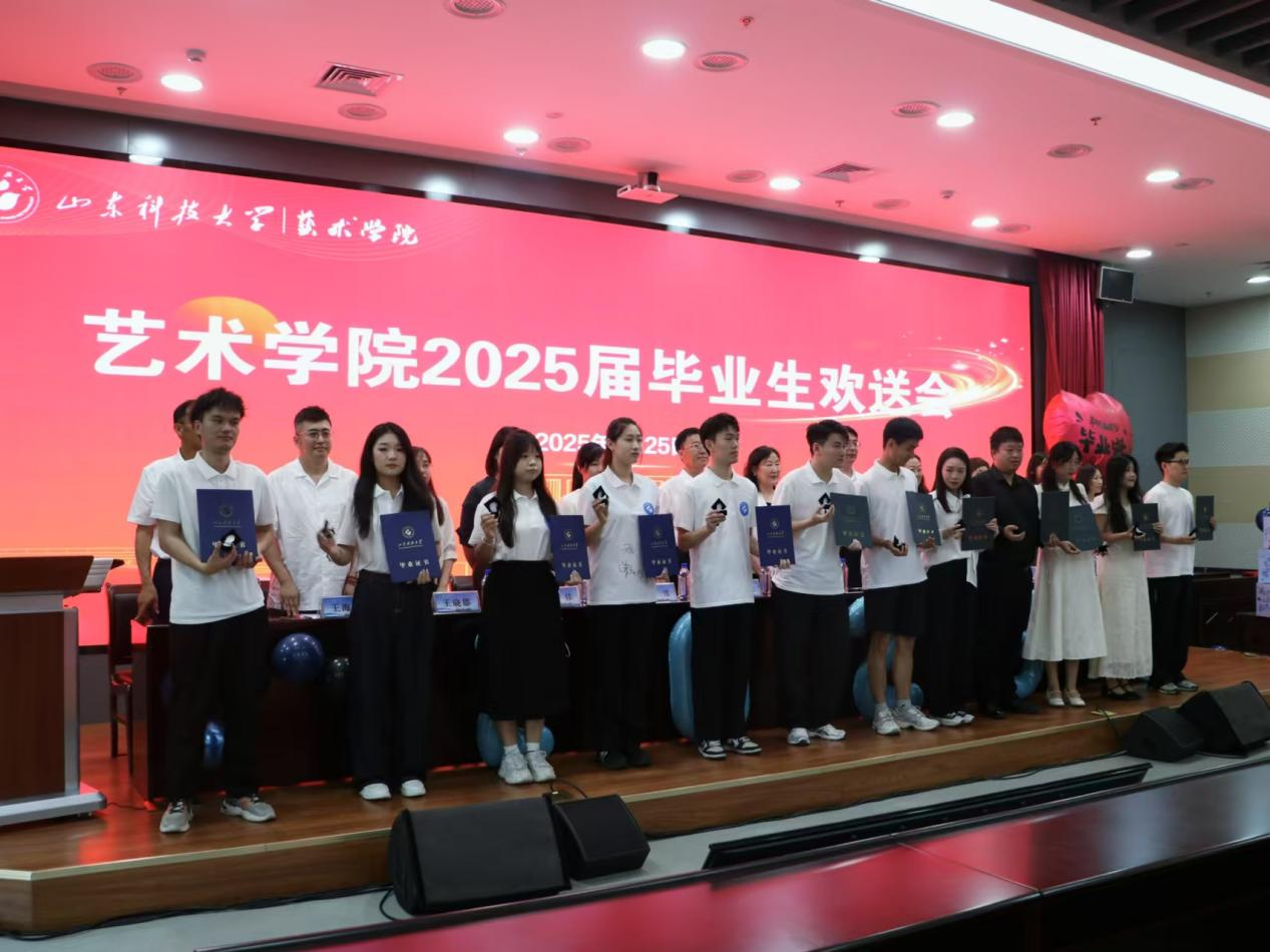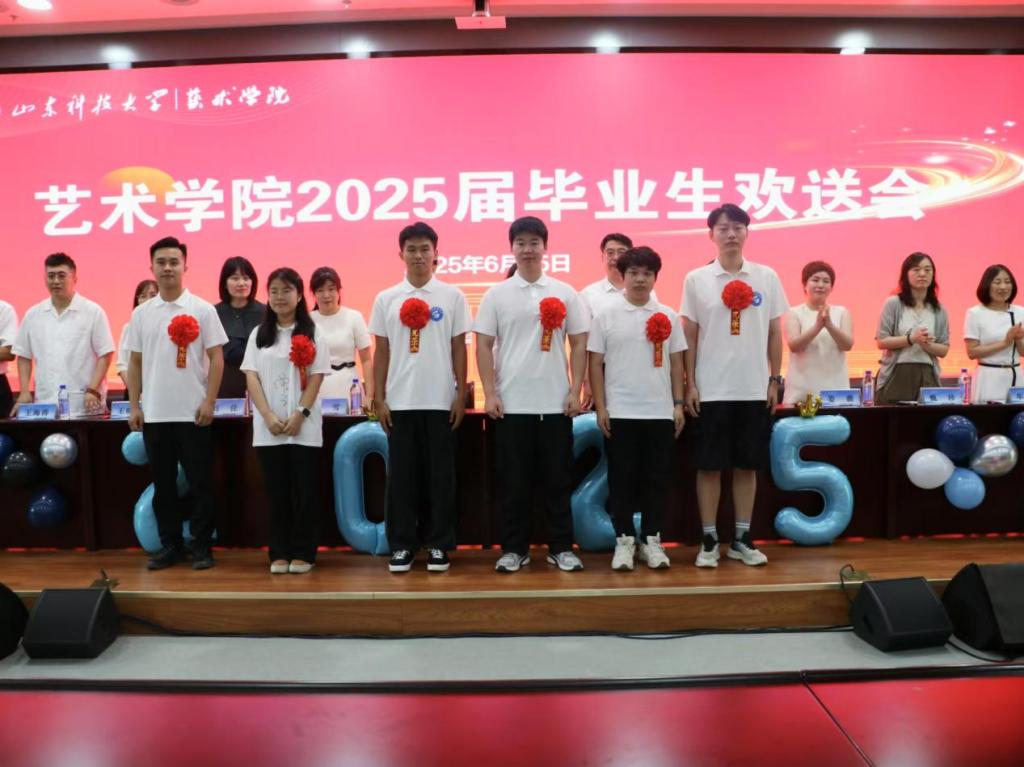 欢送会上,艺术学院党委书记王斌代表学院致辞,他代表学院全体师生,向圆满完成学业的同学们表示衷心的祝贺,向即将走出校园的毕业生们寄予殷切的期望。他用四点概括了其对毕业生们的未来期望:一是拓宽格局,在实践里磨炼、涵养道德修为;二是借势奋进,以担当实干,攀登人生高度;三是勇担使命,于人生抉择间,厚植家国情怀;四是砥砺攻坚,凭报国行动,实现自我成长。教师代表吴欣源老师送上临别赠言。他深情的回顾了四年的师生情谊,对见证了同学们如雏鸟初飞般成长蜕变倍感欣慰。临别之际,他殷切地嘱托同学们:永葆对艺术的虔诚初心,用音乐传递情感、抚慰心灵、践行使命。无论未来舞台大小,他希望同学们能够带着学院赋予的“美、真、善”精神力量,唱响属于自己的生命乐章!本科毕业生代表赵心艺、研究生毕业生代表刘畅分别发言。他们深情回顾了在山东科技大学七载春秋的成长点滴,怀着感恩之心,向辛勤耕耘的老师们表达了最诚挚的敬意与感谢,并衷心祝愿师长和同窗们前程似锦,未来可期。“每一份付出终有回响,每一次挑战皆是成长。愿我们以梦为马,不负韶华,共赴星辰大海!”他们真挚的话语引发了全场共鸣。