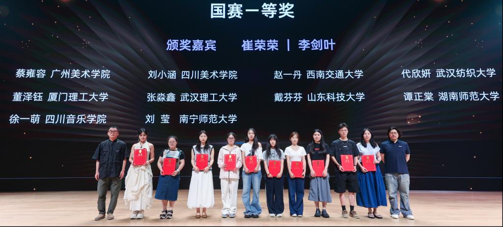 近日,从2025米兰设计周中国高校设计学科师生优秀作品展“人工智能+纹饰及时尚周边设计”课赛结合邀请赛决赛现场传来捷报。我院视觉传达设计系戴芬芬同学(指导老师:宋美音)凭借作品《土家织锦绣——婚庆时尚产品》从全国115所院校、145个教学班的激烈竞争中脱颖而出,最终在浙江理工大学举办的现场决赛中斩获国家级一等奖最高荣誉。