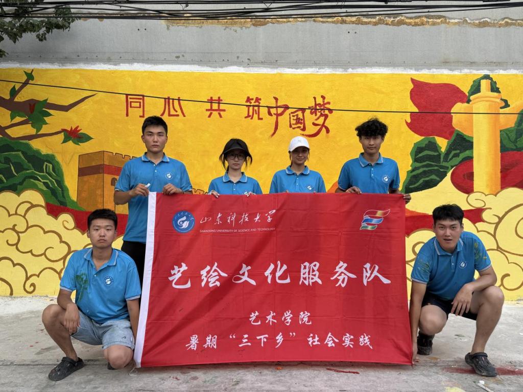 8月5日,山东科技大学艺术学院“艺绘文化服务队”奔赴临沂市郯城县港上镇,开展以“党建引领、绿色发展、乡村振兴”为主题的墙绘实践活动,用艺术笔触为乡村注入新活力。