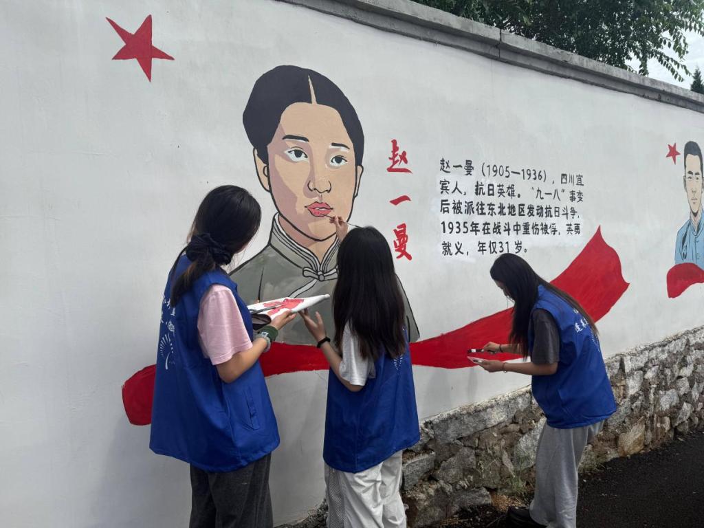 2025年8月10日,山东科技大学艺术学院“艺彩纷呈”志愿服务队抵达山东省烟台市蓬莱市,首站走进夏侯苏民纪念馆开展红色文化实践活动。队员们结合专业特长,历时7天完成主题墙绘创作,以艺术手法再现了8位民族英雄的英勇形象。通过查阅史料、与馆方深入交流,团队将英雄事迹融入画作,既美化了展馆环境,也为参观者提供了更生动的红色教育载体。纪念馆负责人表示:“大学生用青春笔触传递信仰力量,让红色精神焕发新的时代光彩。”