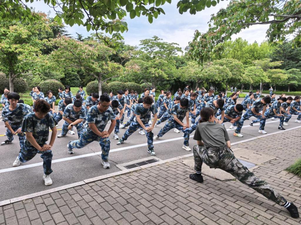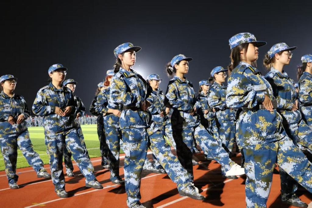 清晨,清脆的哨声唤醒校园,新生们以规范的早操开启一天的训练,在步伐与节奏的配合中快速进入状态。上午的队列训练聚焦齐步走动作的精细化打磨,从摆臂高度到步幅大小,新生们反复练习、力求标准;休息时段,艺术学子们主动登台献艺,《传奇》的悠扬旋律、《最长的电影》的动人演唱,将专业特长融入军训间隙,为紧张的训练增添了别样艺韵。下午的训练更重实战技能,新生们认真学习持枪动作规范,在匍匐前进训练中克服场地阻力、锤炼毅力,还完成了防毒面具的佩戴与使用实操,同步进行的正步定点与行进练习,进一步提升了整体队列的协调性。晚间,新生们迎来军训期间的首次晚训,在灯光下复盘日间训练内容,延续着昂扬的训练劲头。