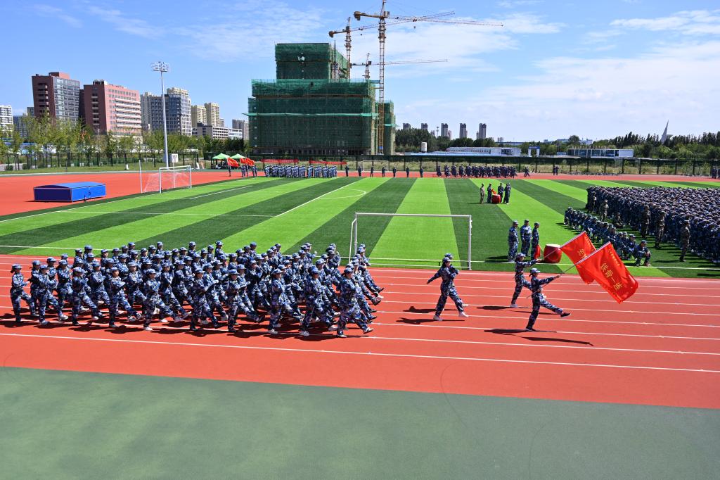 9月17日,科创园区训练场上口号响亮、步伐整齐,艺术学院2025级新生以昂扬的斗志迎来新一天的军事化训练。