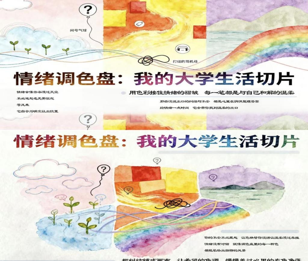 此次大学生心理情绪色彩海报设计活动,既是艺术学院将专业实践与心理健康教育结合的创新尝试,也为学生搭建了情绪表达与交流的桥梁。通过色彩与创意的碰撞,学生们学会觉察自我情绪、理解他人感受,进一步增强了集体归属感与心理支持感。