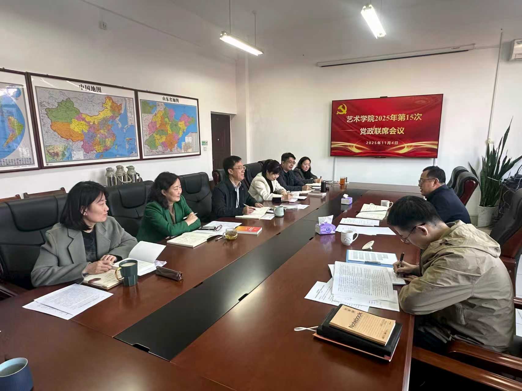 11月4日,艺术学院在J9-404开展党委理论学习中心组(扩大)第14次集中学习,并召开学院第15次党委会和第15次党政联席会。学校2025年中层党组织理论学习列席旁听工作组副组长、统战部常务副部长、台港澳工作办公室主任王永君,工作组成员列席旁听。