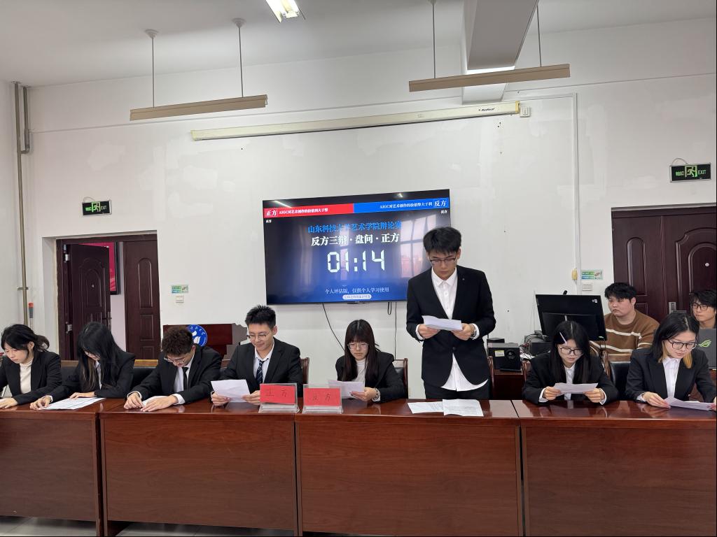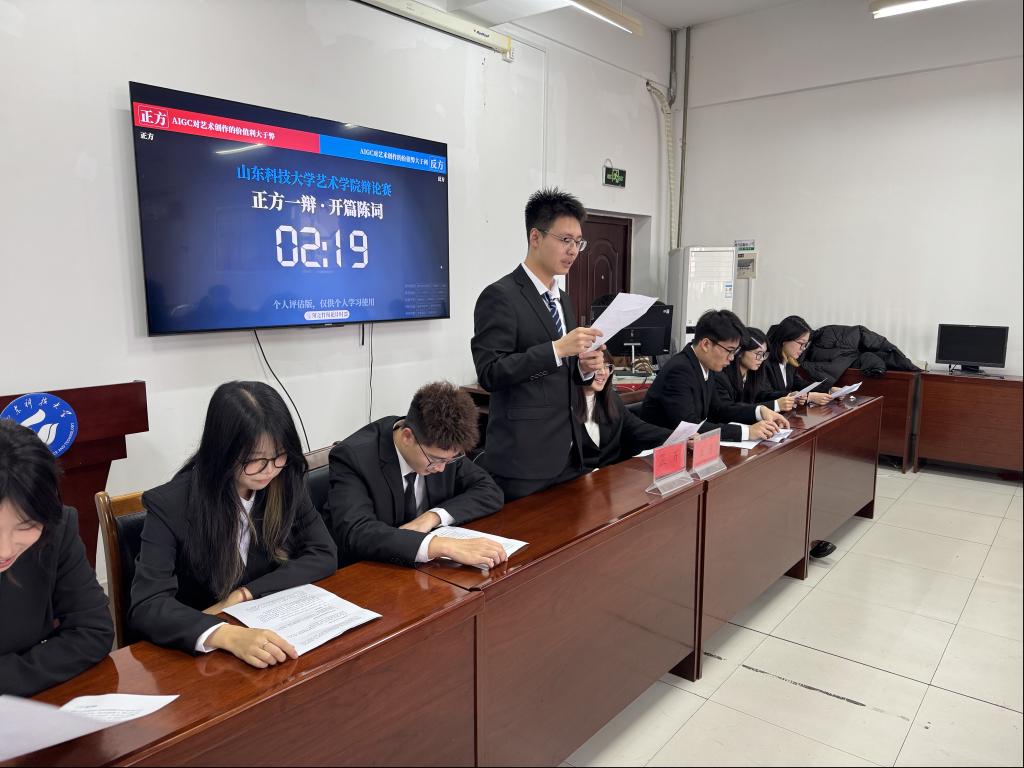 12月16日,由艺术学院学生会科创部主办的“智辩AIGC,论道艺理”AIGC艺术伦理科创主题辩论赛在J9-425成功举行。本次辩论赛聚焦生成式人工智能技术与艺术创作交叉领域的前沿伦理议题,正反双方围绕“AIGC对艺术创作的价值利大于弊还是弊大于利”这一核心辩题,展开了一场兼具思想深度与专业内涵的精彩交锋。