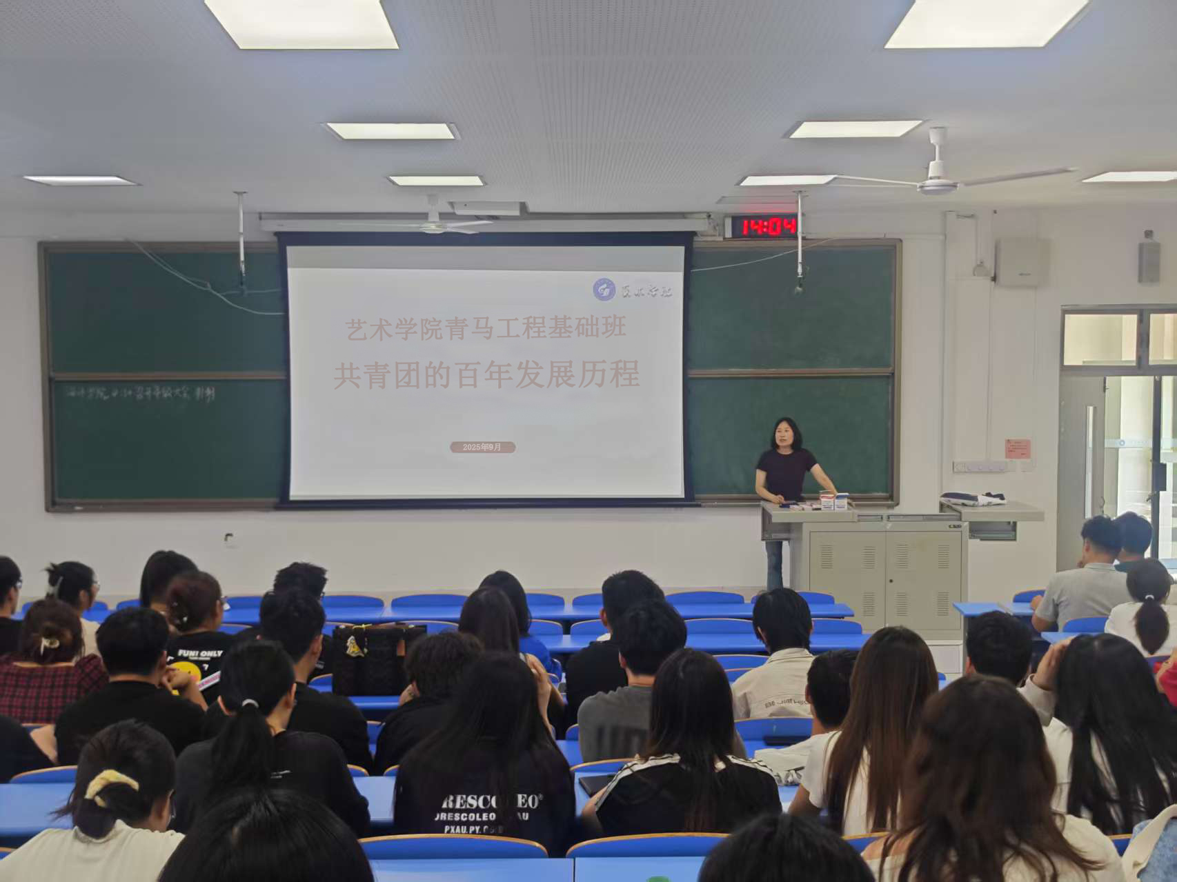为引导青马学员深刻感悟共青团百年奋斗征程中的初心使命,从团史学习中汲取红色养分、凝聚青春力量。9月26日,艺术学院在J7-103举办“青马工程”基础班第二次专题课程。本次课程由学院团委书记牟杰老师担任主讲人,以“共青团的百年发展历程”为题作专题演讲,基础班全体学员参与学习。