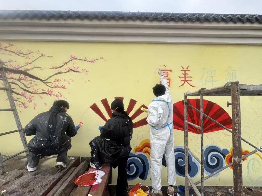 实践期间,队员们不畏冬日寒风,以饱满的热情投入创作。大家分工协作、各司其职,刷底、起形、调色、绘制一气呵成,用扎实的专业功底勾勒线条、填充色彩。原本普通的墙面在一笔一画的精心描绘下,换上了绚丽多彩的“新衣”,一幅幅主题鲜明、格调清新的墙绘作品跃然墙上,成为乡村里流动的文化景观,吸引了不少村民前来观赏点赞。