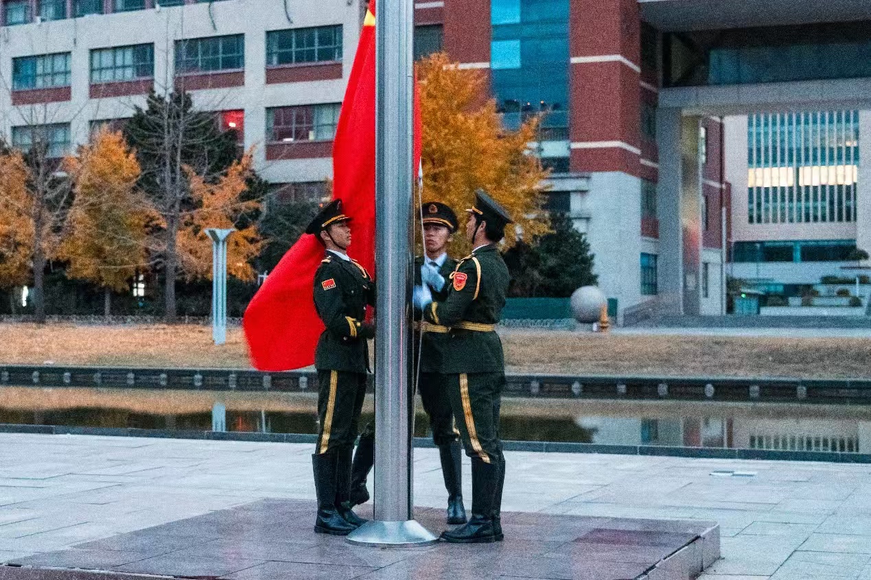 11月25日,艺术学院在泰山广场举办升旗仪式,艺术学院党委副书记兼副院长卫雪、全体专兼职辅导员以及本科2023、2024级、研究生2024级全体学生参加本次升旗仪式。