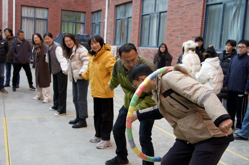 本次趣味运动会设有拔河比赛集体项目、跳绳比赛、解手链、夹球跑、尖叫鸡、一圈到底、滚滚乐等六个小组项目,和套圈比赛、滚滚乐比赛两个个人项目。来自四个系和办公室五支参赛队伍参与其中。拔河比赛中,各队成员齐心协力,紧握绳索,全力拉扯,现场呐喊助威声不断;跳绳比赛,摇绳老师配合默契,跳绳老师们迅速反应,身手矫健,赢得掌声;解手链项目,教职工们手拉手,冷静思考、相互配合解开“连环锁”;夹球跑时,参赛老师五人一组,小心夹球前行,在护球的同时争取速度;“尖叫鸡”项目富有趣味,老师们为了躲避击打四处躲藏,引得现场笑声不断;一圈到底让老师们手脚并用,极尽身体所能传递呼啦圈;套圈和滚滚乐区域,教职工们屏息凝神、专注投入,现场气氛紧张且欢乐。