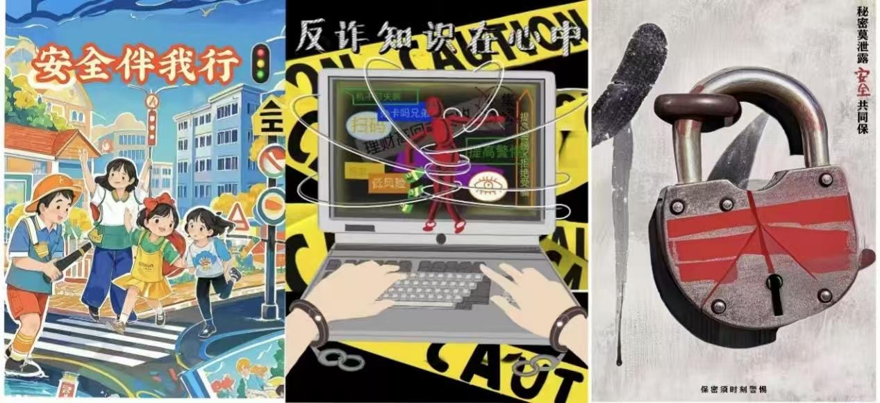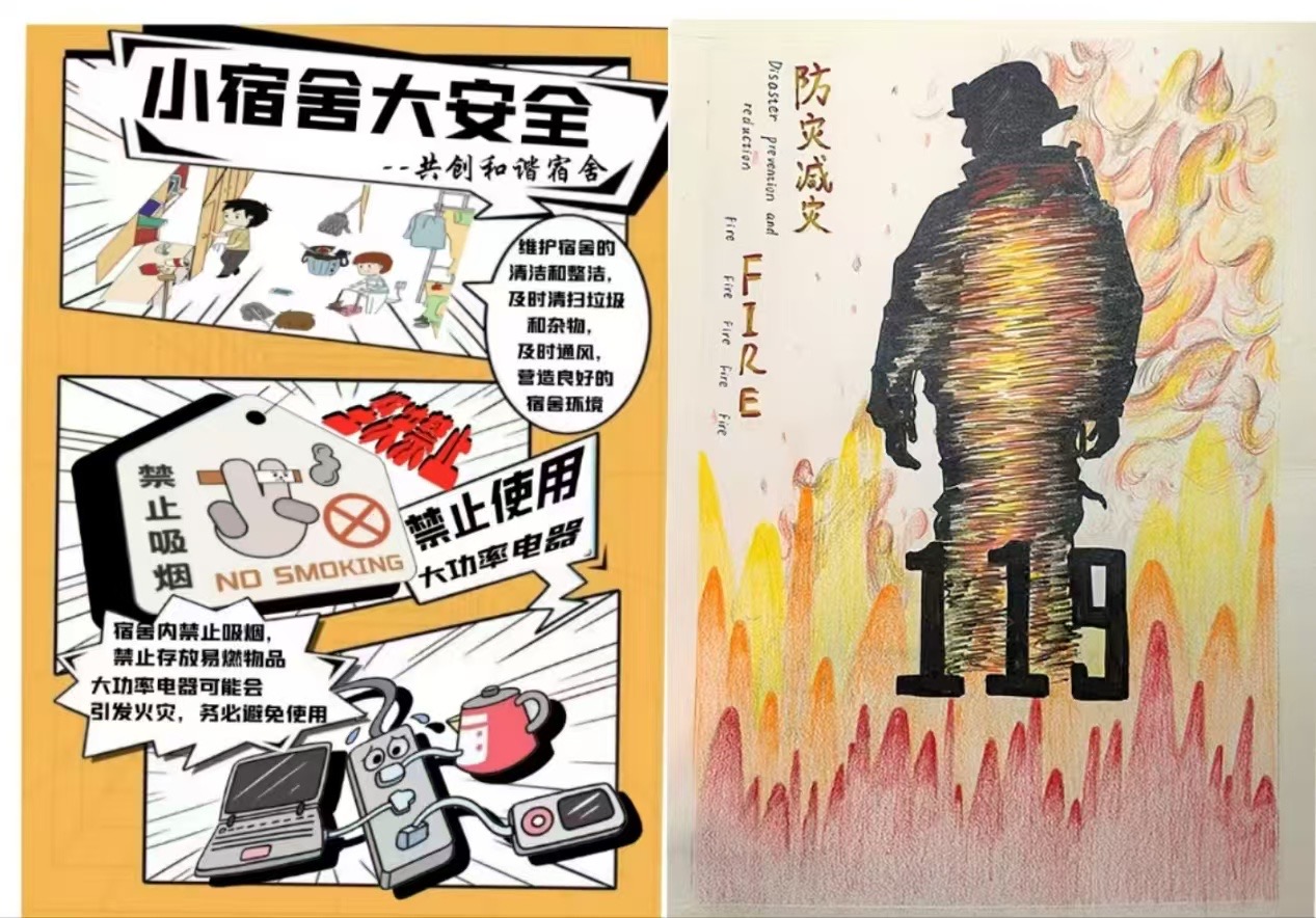 本次活动采取安全知识答题、海报创作等形式开展,向学生们以更加生动形象的方式宣传安全教育知识。活动共收取海报三十余张,其中,《防诈枷锁》以反电信诈骗为主题,采用了鲜明的视觉元素来传达其核心信息,配合各种与诈骗相关的词汇,具有很强的警示和教育意义;《小宿舍大安全》作品中列举了宿舍中的一些安全隐患并展示了一系列违禁电器,传达了宿舍安全的重要性;《防灾减灾》以消防员为主要画面,画面中消防员背影坚毅有力,背景火焰的颜色威严肃穆,从侧面告诫同学们应当重视消防安全问题。同学们纷纷表示以这种方式不仅学到了实用的安全知识,还锻炼了思维能力与应变能力,在互动中增强了安全意识。