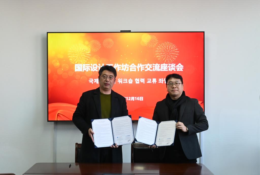 讲座结束后,金教授与山东科技大学艺术学院举行了国际设计工作坊合作交流座谈会并签署了合作意向书。双方将在未来共同开展国际设计工作坊项目,重点聚焦国际设计热点、企业设计难点和跨文化设计交流,并在如何推动国家一流专业建设上进一步互通有无。以此充分发挥两校的学科优势,搭建国际化设计平台,为师生提供更多的实践与创新机会。