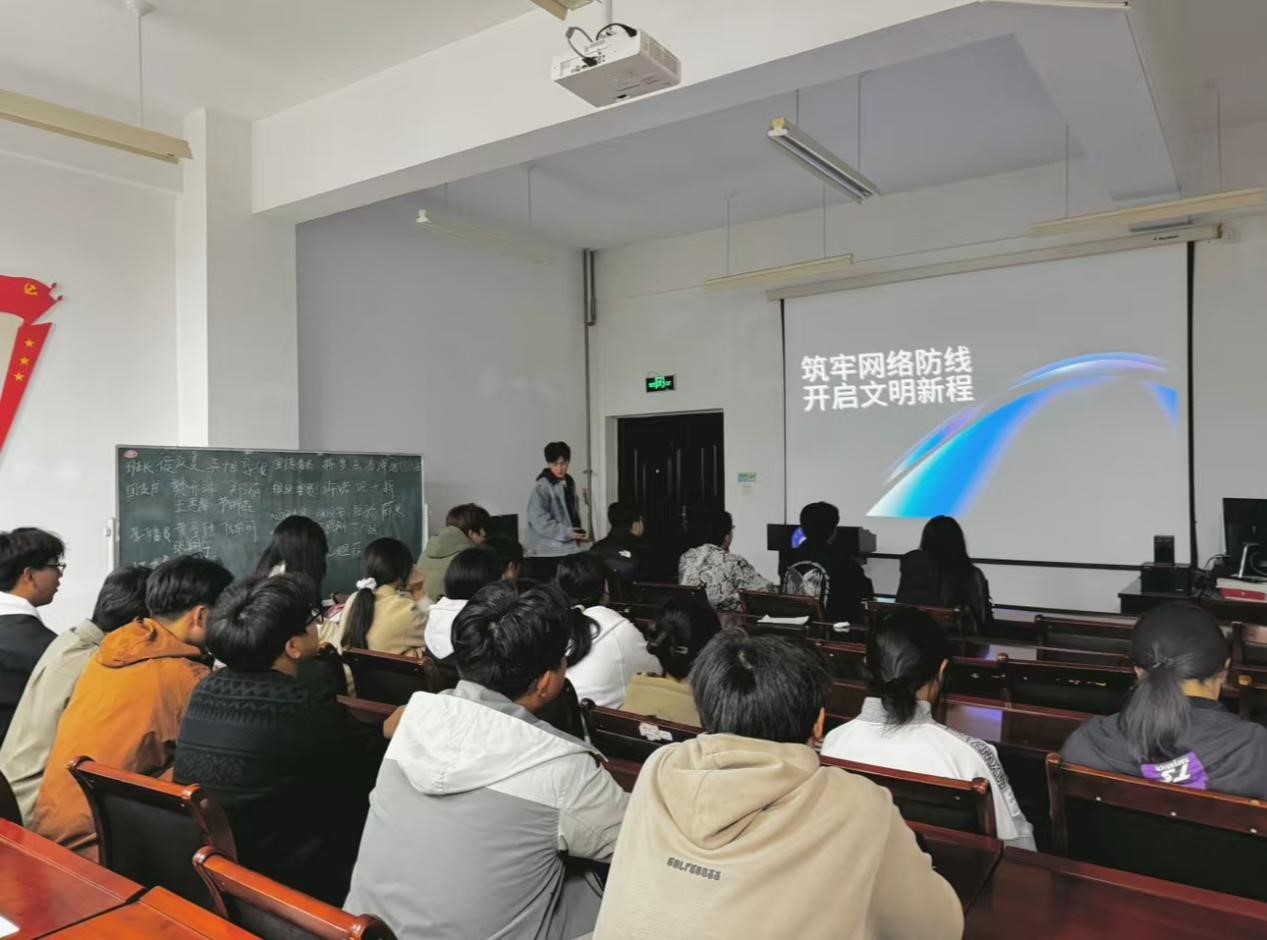 在活动中,主讲人李云坤老师借助趣味动画与PPT,以生动直观的形式向同学们普及网络安全知识。他从网络安全的重要地位讲起,结合诸多网络真实案例,深入阐释如何文明健康上网,详细剖析常见的网络攻击手段,并给出实用的安全防范措施,让同学们受益匪浅。会上同学们反响热烈,提出许多想法和疑惑,李老师耐心地解答了同学们提出的一个个疑问,还提醒同学们网络不是法外之地,要时刻注意自己在网络上的言行。活动最后,同学们互相分享心得,纷纷表态,作为新时代大学生,应该提高自身明辨是非的能力,驾驭网络这把“双刃剑”,主动参与维护网络空间安全,共同创建风清气正的网络空间。