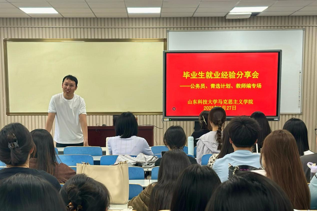 5月27日下午,学院在J5-301举办就业经验分享会——公职类考试专场。本期由成功考取公职类岗位的2025届研究生徐正、曲茂旺、宋露晓、闫羽廷等4人主讲。研究生辅导员邴建伟主持,全体研究生参加。