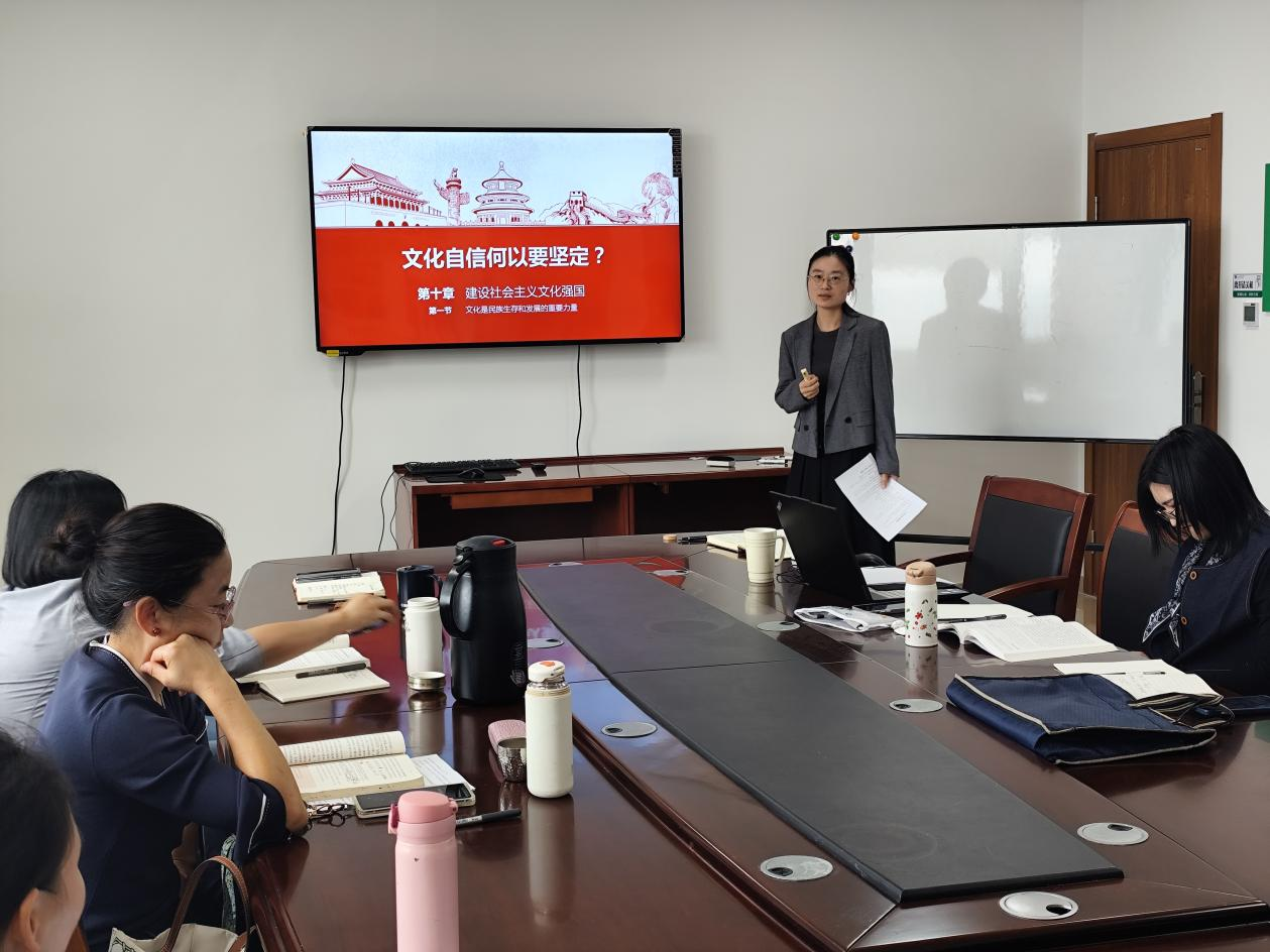 尹诵首先就“学生常见问题清单采集和教案创新修订”等工作进行了部署和安排,随后伊丹丹和曹丙燕分别分享了《专题七 邓小平理论》和《专题八 “三个代表”重要思想》的深度备课心得。最后开展学校青年教师教学比赛的教研部初赛,侯灿、石海龙、张建飞、伊丹丹、郗凤芹先后进行了教学展示,教研部骨干教师给予细致点评和建议。经与会教师讨论,推选伊丹丹参加学院复赛。