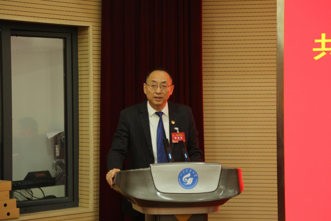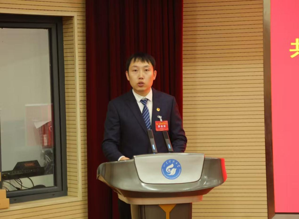 徐波向参加大会的领导和来宾表示热烈的欢迎与衷心的感谢,对全院团员青年给予了肯定,同时也提出了三点希望:一是守牢马院初心,筑牢信仰根基;二是精进专业本领,锤炼育人硬功;三是勇担时代使命,彰显青年作为。